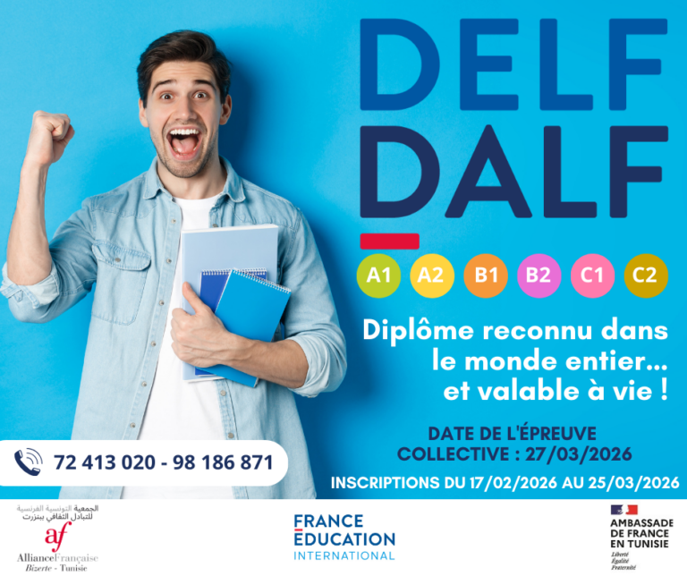 Inscription directement à l’Alliance française de Bizerte à partir du 17 Février 2026.